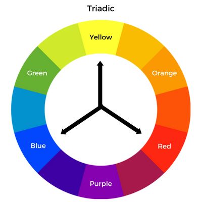 Nguyên tắc: Chọn ba màu nằm cách đều nhau trên bánh xe màu, tạo thành hình tam giác đều (ví dụ: Đỏ - Vàng - Xanh dương).