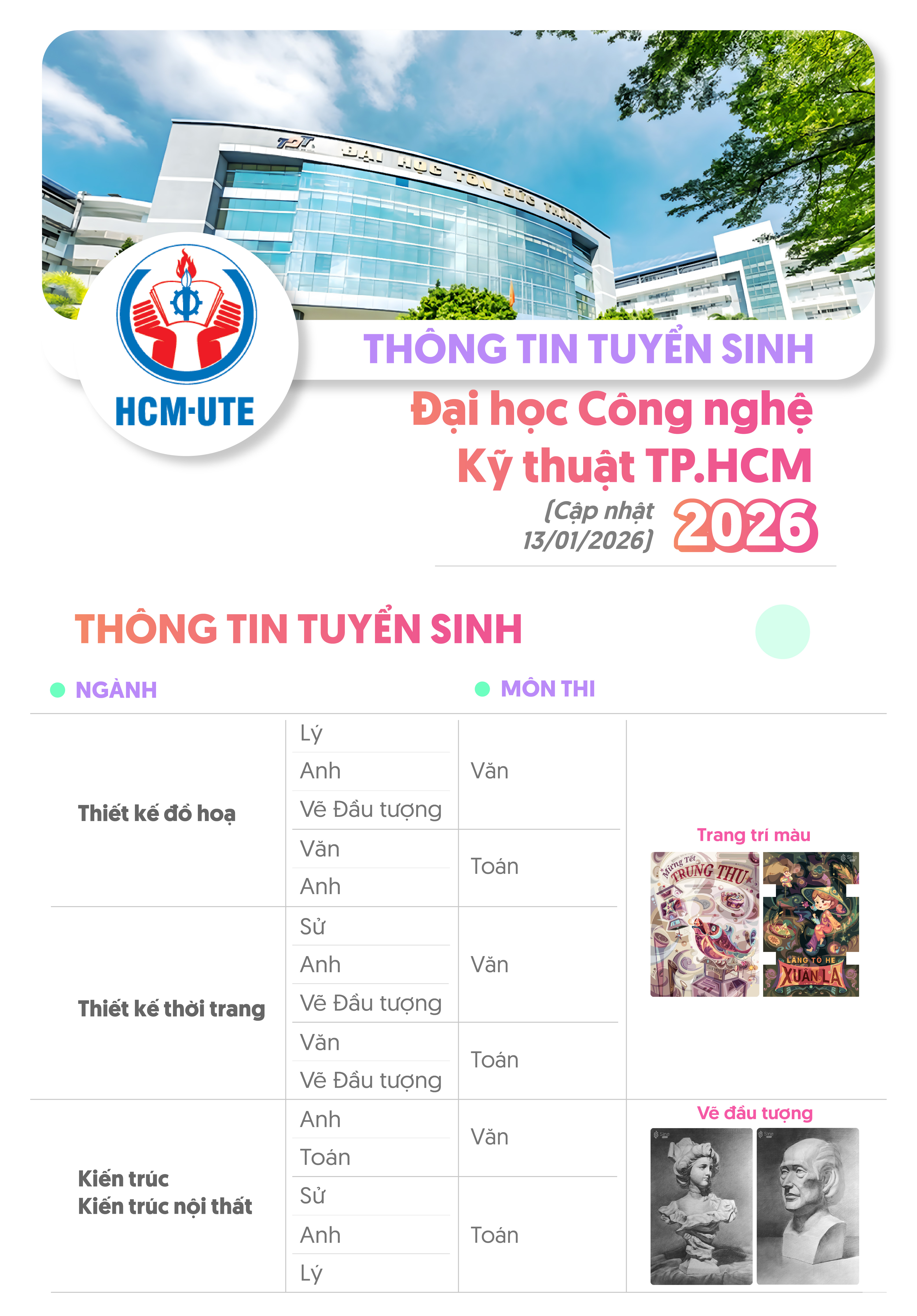 Văn - Vẽ ĐT - Vẽ TT, Toán - Văn - Vẽ TT, Văn - Lý - Vẽ TT, Văn - Anh - Vẽ TT |