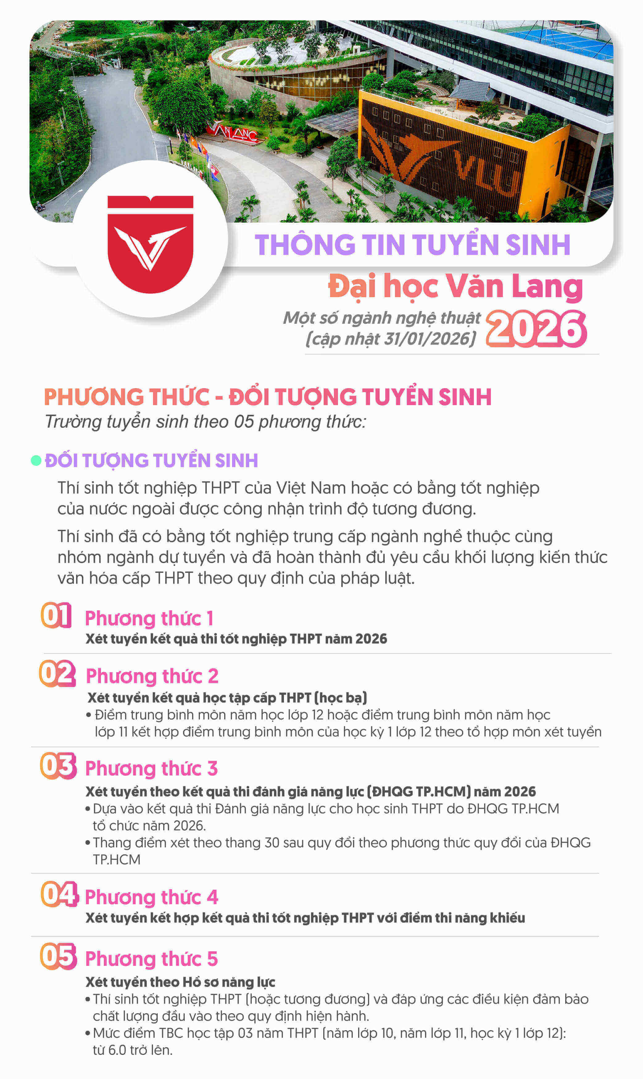 Tham khảo thêm thông tin tại: Thông tin tuyển sinh chính thức 2025 của trường đại học Văn Lang