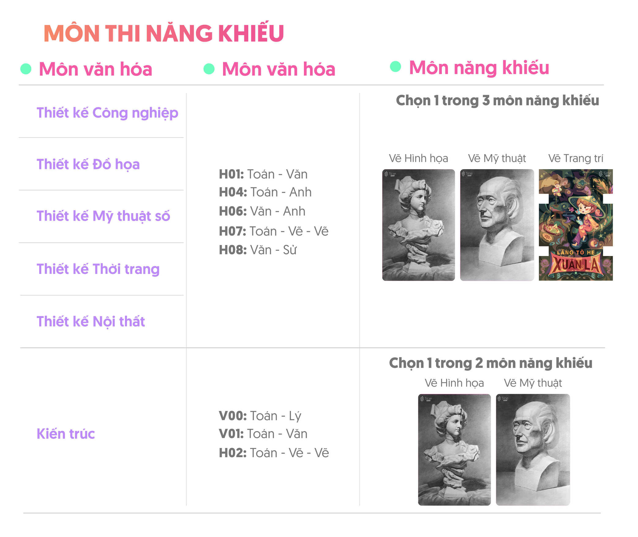 Phương thức 4: Xét tuyển kết hợp thi tuyển các môn năng khiếu đối với 10 ngành: Kiến trúc, Thiết kế nội thất, Thiết kế công nghiệp, Thiết kế thời trang, Thiết kế đồ họa, Thiết kế Mỹ thuật số, Piano, Thanh nhạc, Đạo diễn điện ảnh – truyền hình, Diễn viên kịch, điện ảnh – truyền hình